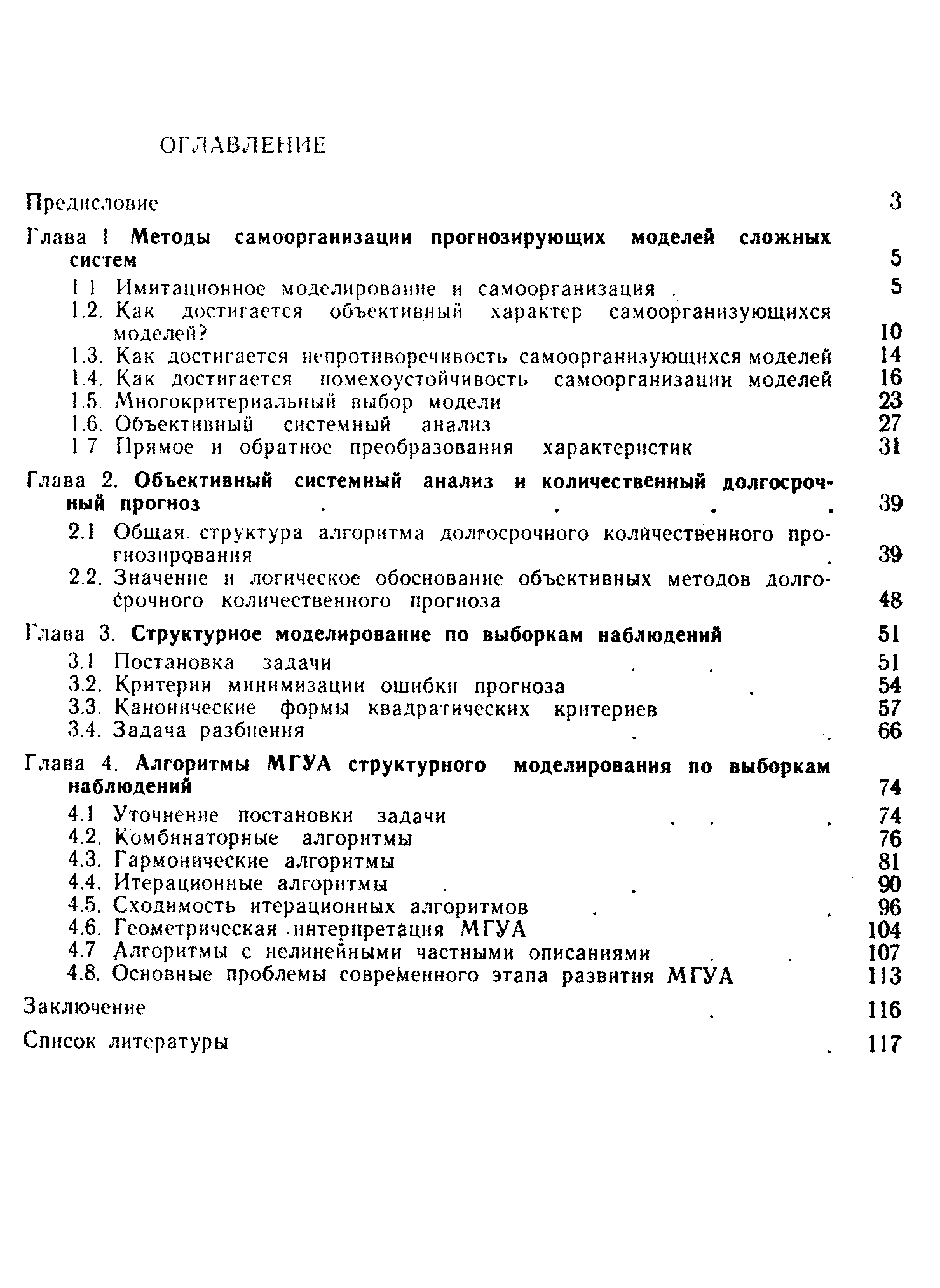 Рассмотрены методы саморганизации прогнозирующих моделей сложных систем. Описан объективный системный анализ для долгосрочного прогнозирования. Изложено структурное моделирование по выборкам наблюдений. Описаны алгоритмы МГУА. - М.: Радио и связь, 1987 — 119 с.  (in russian)